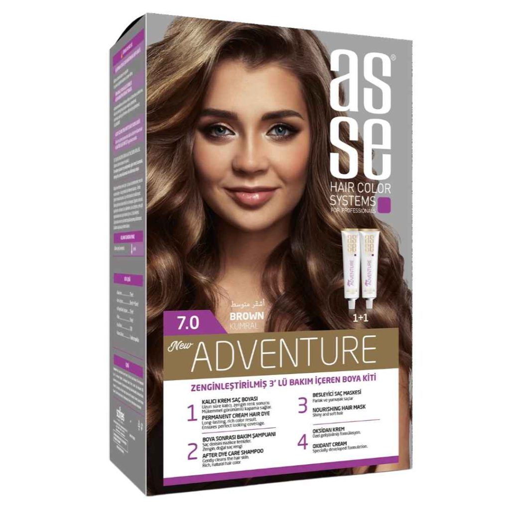 رنگ مو بدون آمونیاک آسه asse مدل ADVENTURE شماره 7.0 رنگ قهوه ای 50 میل، یک محصول باکیفیت و بدون آمونیاک است که برای رنگ کردن موها به رنگ قهوهای جذاب و طبیعی طراحی شده است. این رنگ مو با حجم 50 میل، برای استفادهی یک بار مناسب است.