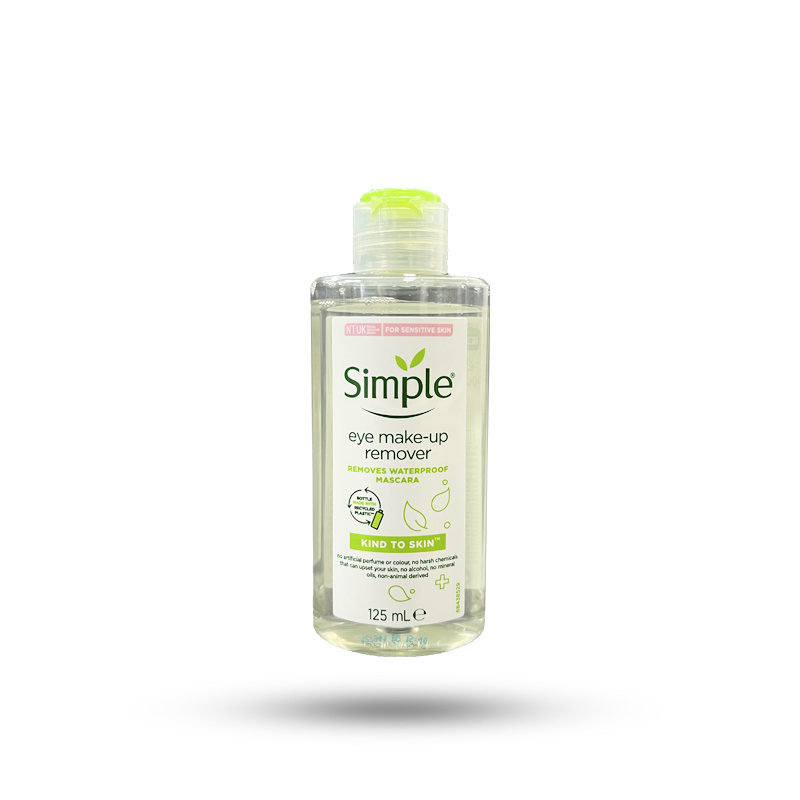 - پاک کننده آرایش چشم simple سیمپل مخصوص پوست دور چشم حساس است و قابلیت پاک کردن انواع آرایش ها ضد آب را دارد.